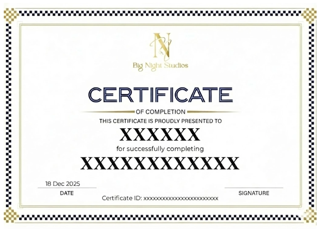 The course content is well-structured and engaging. Big Night Studios provided great support throughout, making the learning process smooth and rewarding. Now I can edit videos for my freelance projects.